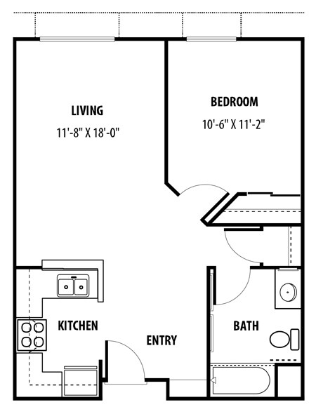 1 Bed, 1 bath - Floorplan 1 ![]()