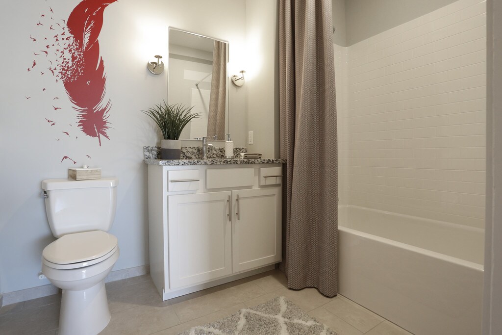 Spacious one-bedroom with 9’ ceilings. Beautifully appointed kitchen with designer cabinetry, tile backsplash, granite countertops, stainless steel appliances, and in-home washer/dryer. The perfect combination of tile, LVT wood design, and carpet flooring throughout. Linen closet and dual sinks in Master Bath. Large walk-in closet with custom-built shelving. *Rental Rate quoted is subject to change based upon lease term