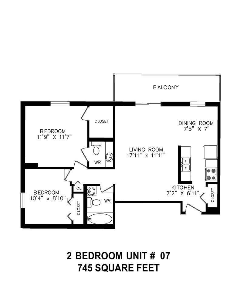 1 Bedroom - Floorplan 4 2 Bedrooms