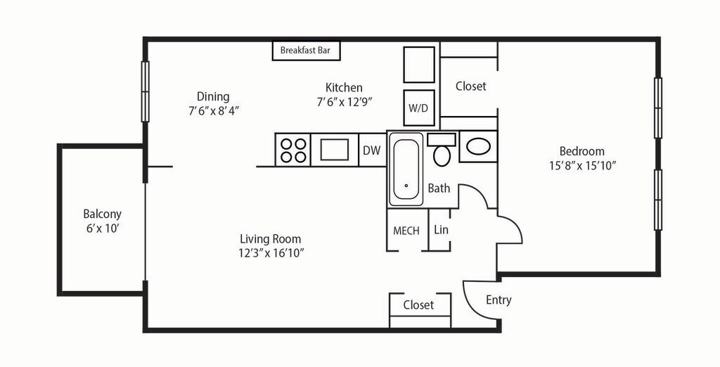 1 Bedroom 1 Bath - Floorplan 2 ![]()