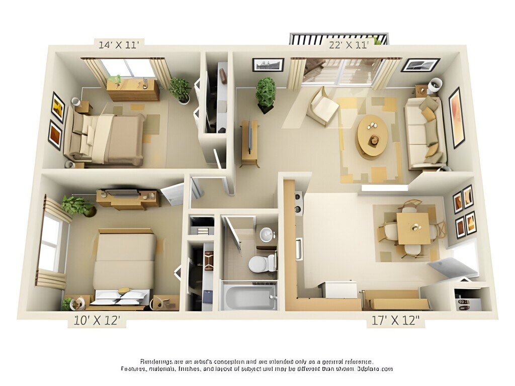 2 Beds, 1 Bath, 1000 sq ftAvailable NowModel Gallery
