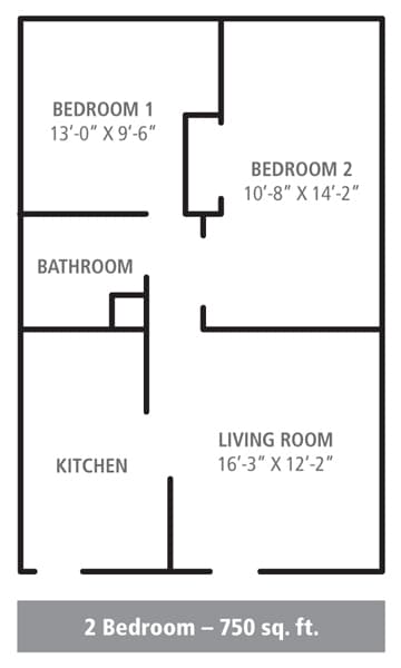 2 Beds, 1 Bath, 750 sq ftPlus FeesAvailable NowModel Gallery