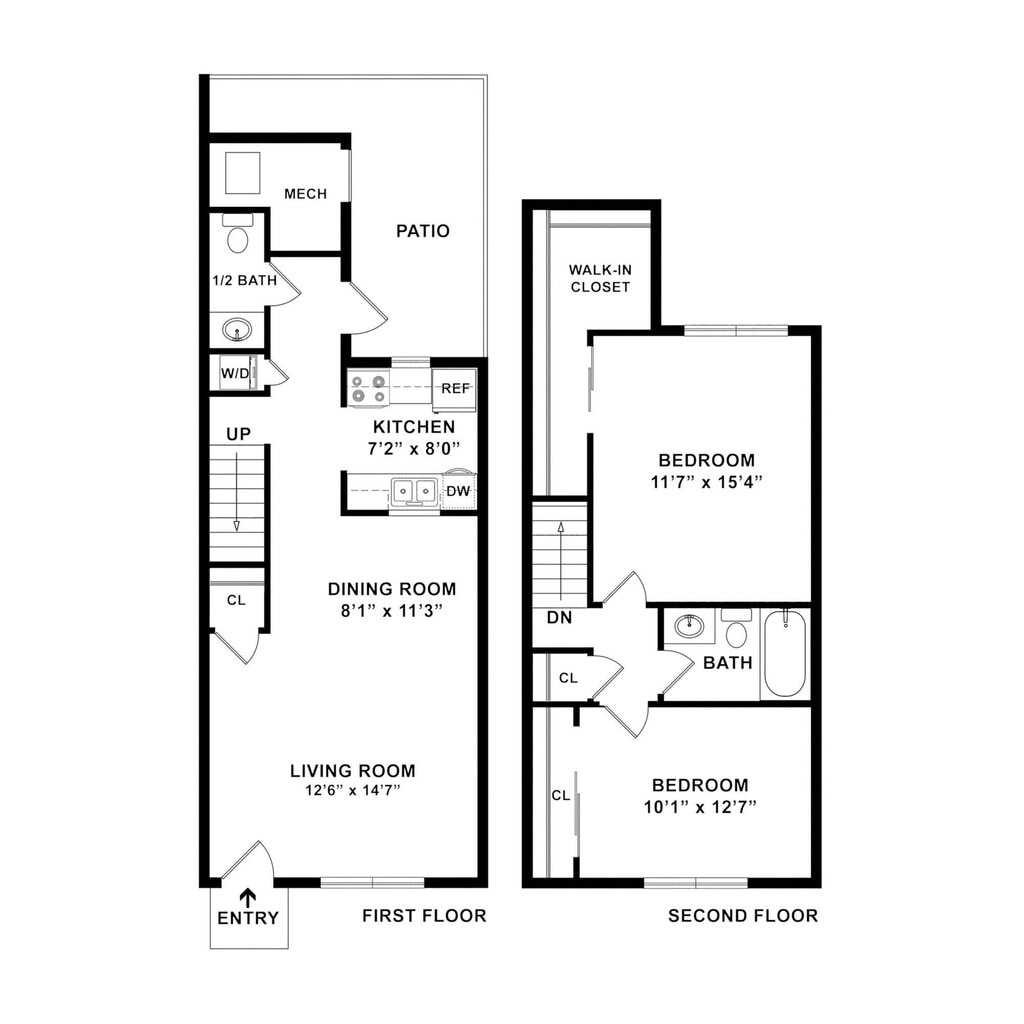 2 BR - Classic Finish - Floorplan 1 ![]()