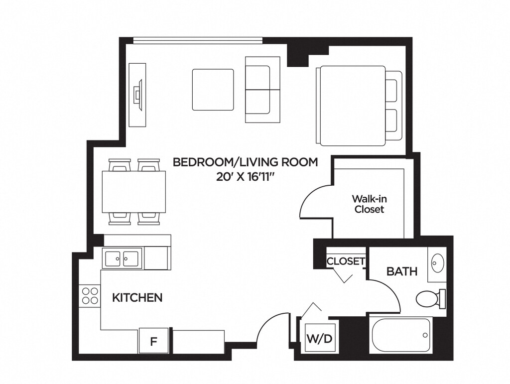 Studio, 1 Bath, 596 sq ftTotal Monthly PriceAvailable NowModel Gallery