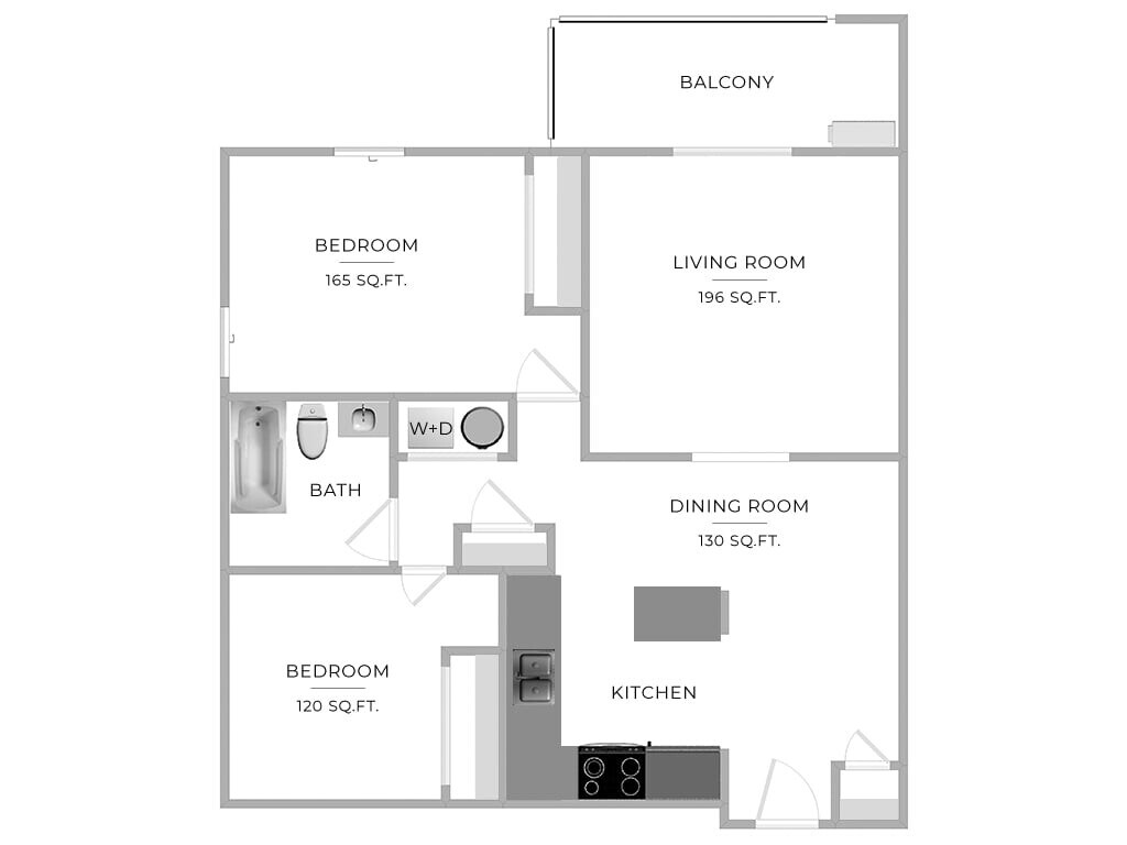 2 Beds, 1 Bath, 990 sq ftAvailable NowModel Gallery