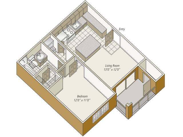Apartment Model: 1 Bed/1 Bath-A1From $1,9141 Bedroom, 1 Bath, 500 sq ftAvailable Now![]()