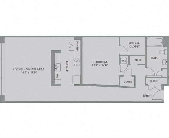 Apartment Model: 1 Bed/1 Bath-A13From $2,2001 Bedroom, 1 Bath, 743 sq ftAvailable NowFloor plans are artist's rendering. All dimensions are approximate. Actual product and specifications may vary in dimension or detail. Not all features are available in every rental home. Please see a representative for details.