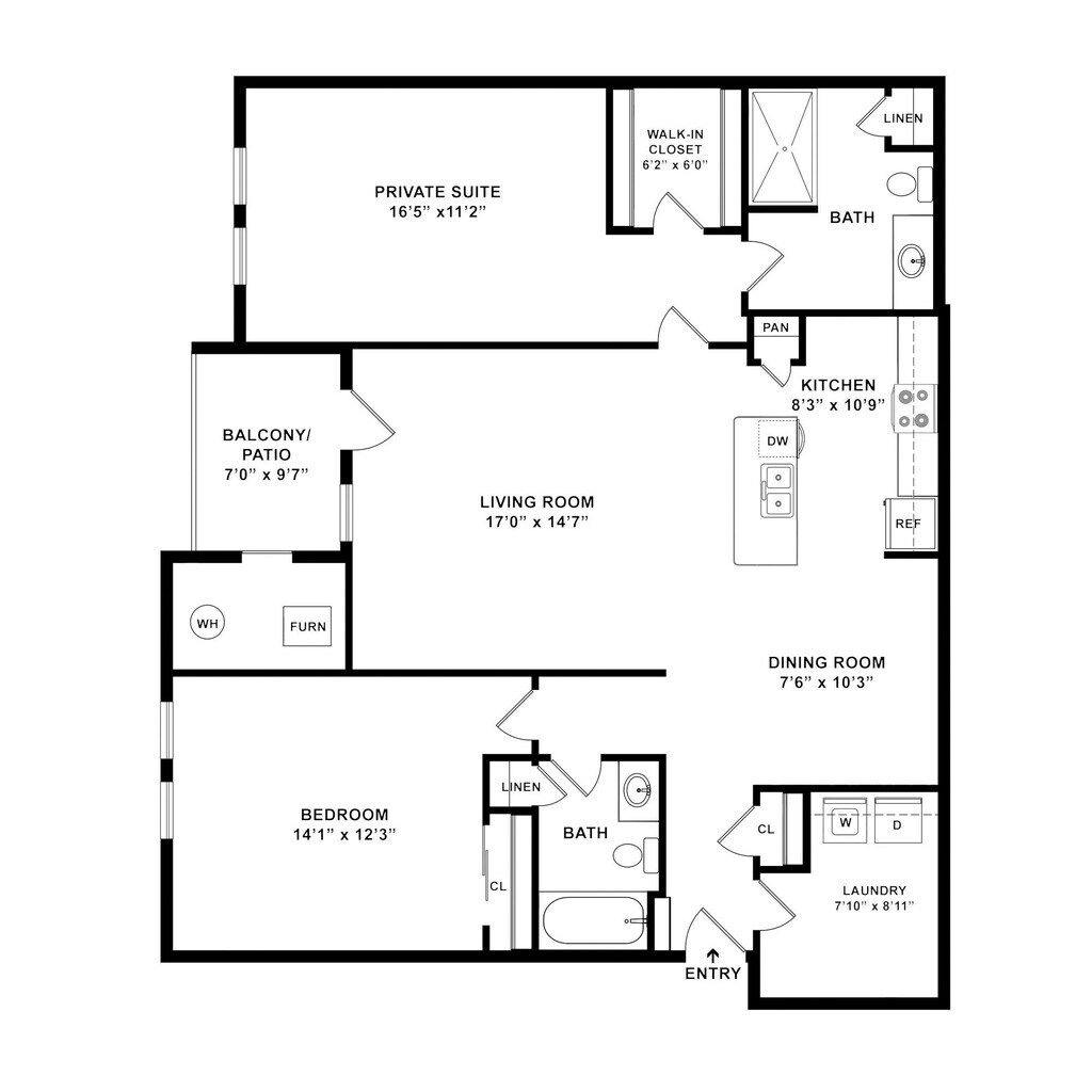 2 Beds, 2 Baths, 1404 sq ftTotal Monthly PriceAvailable NowLargest 2 BedroomThis is the largest 2 Bedroom at this PropertyModel Gallery