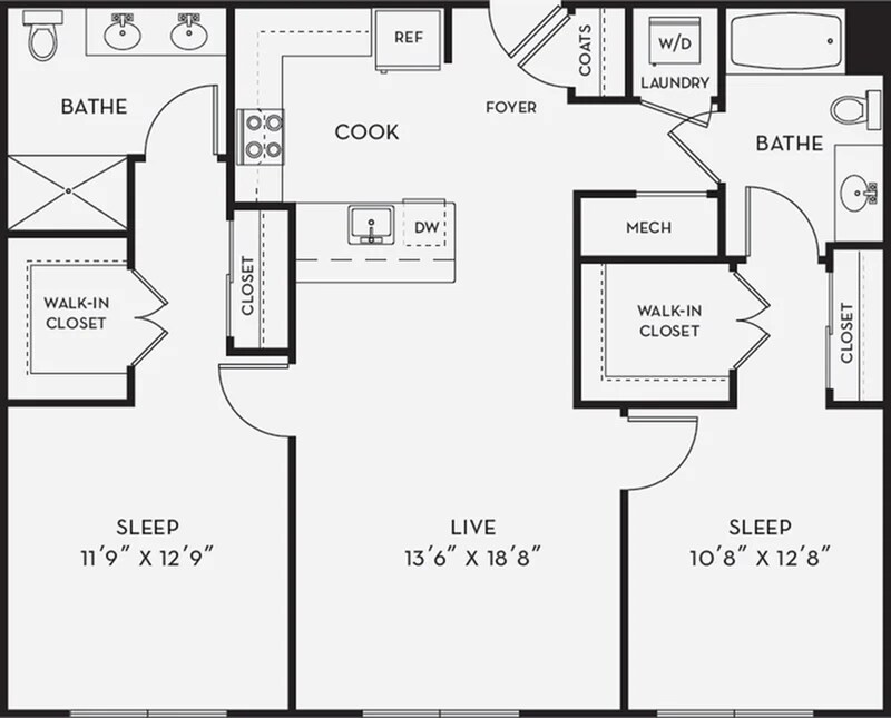 B4A - Floorplan 1 Apartment Unit: 1115Apartment Model: B4A$2,9952 Bedroom, 2 Bath, 1063 sq ftAvailable November 15, 2025Floorplan B4