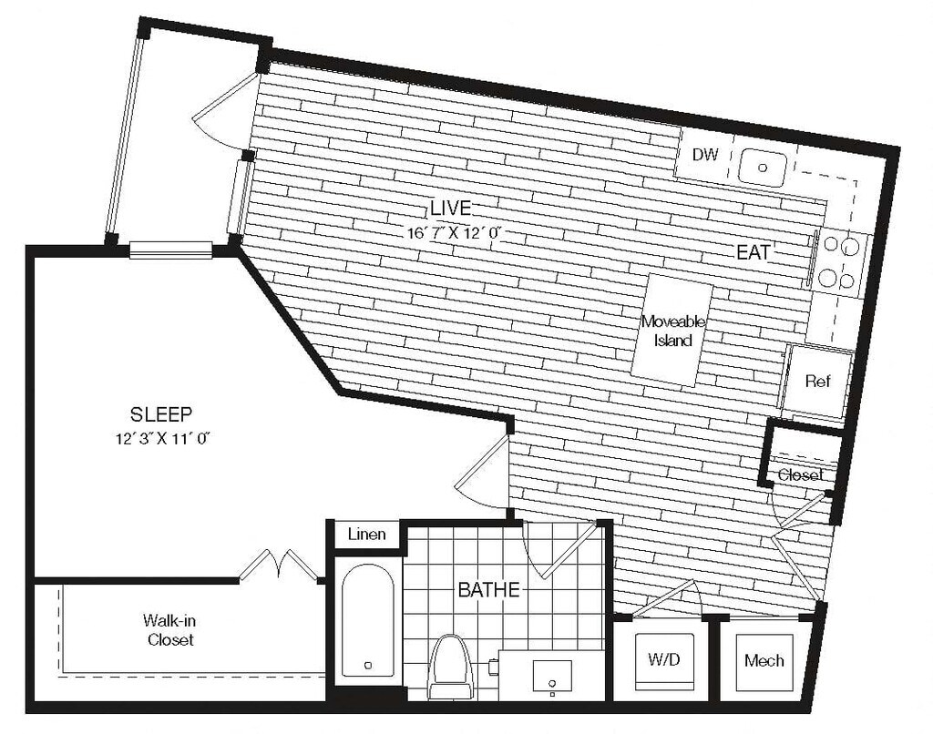 Studio, 1 Bath, 537 sq ftAvailable NowModel Gallery