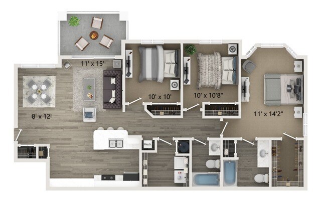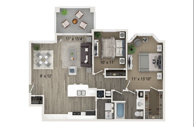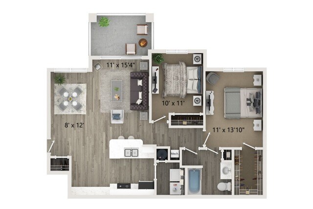 2 Beds, 2 Baths, 1051 sq ftAvailable NowModel Gallery