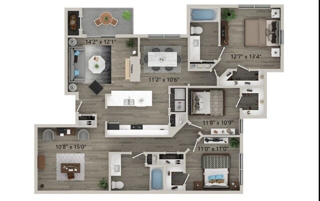 Apartment Model: A4From $1,1061 Bedroom, 1 Bath, 856 sq ftAvailable NowFloorplansPhotos![]()