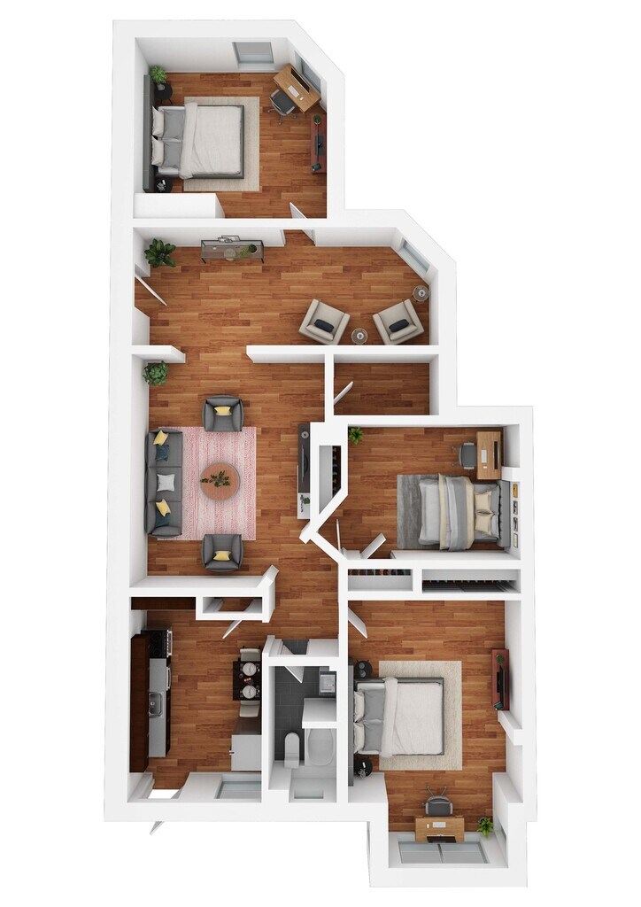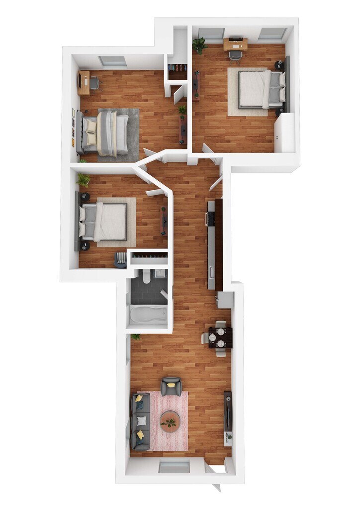 Apartment Model: 3 BR B2$1,2853 Bedroom, 1 Bath, up to 1310 sq ftAvailable August 21, 2026![]()