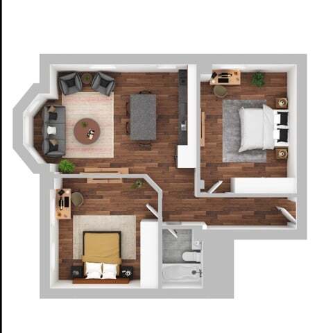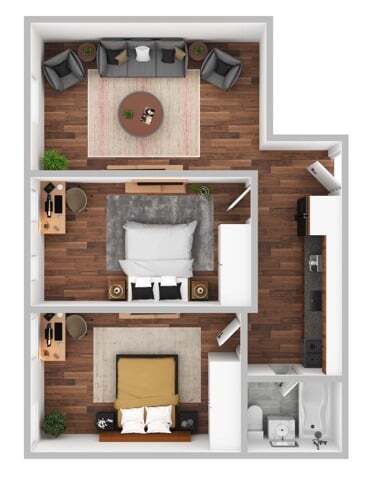 2 Beds, 1 Bath, up to 1100 sq ftAvailable August 21, 2026Model Gallery
