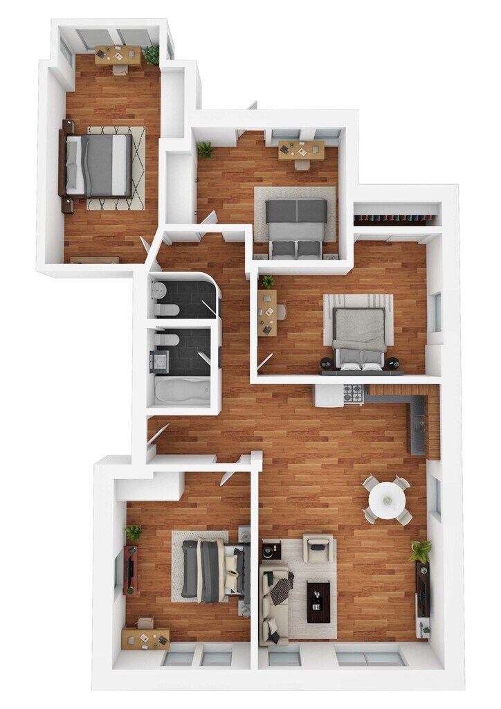 3 BR E1 - Floorplan 1 Apartment Unit: PrivateApartment Model: 3 BR E1$1,2853 Bedroom, 1 Bath, up to 1310 sq ftAvailable August 21, 20263 BR B1