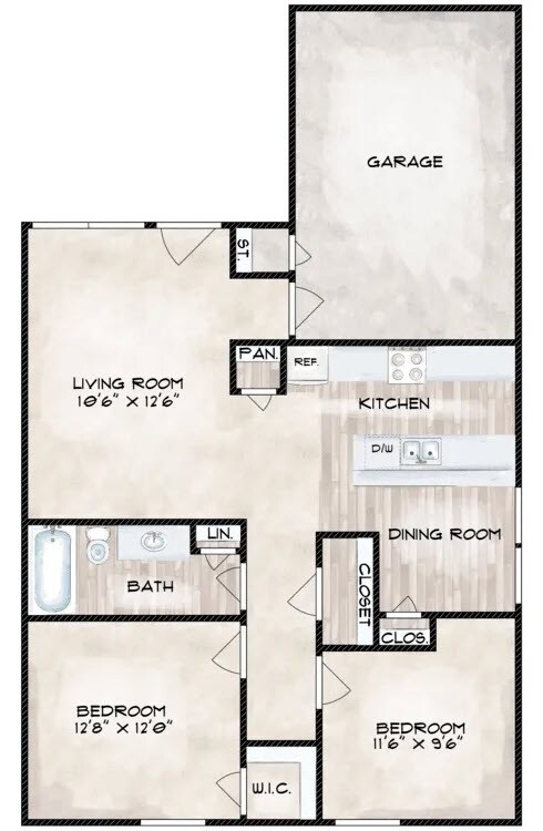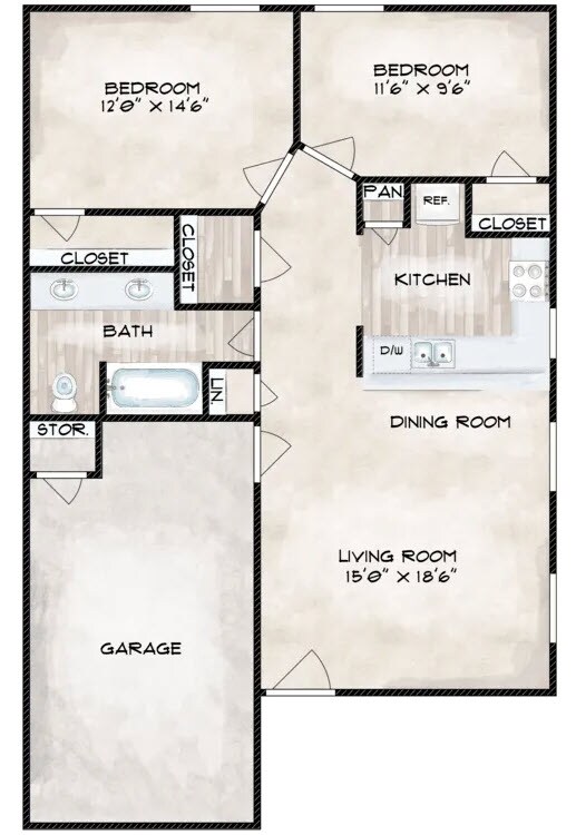 2 Beds, 1 Bath, 979 sq ftModel Gallery
