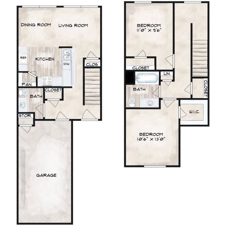 2 Beds, 1.5 Baths, 1066-1100 sq ftModel Gallery