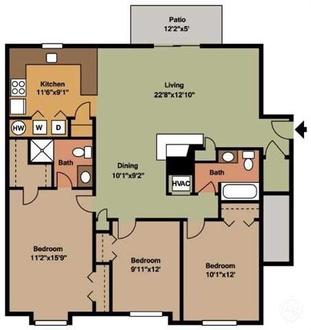 Apartment Model: The Chelsea3 Bedroom, 2 Bath, 1166 sq ftUnavailable![]()