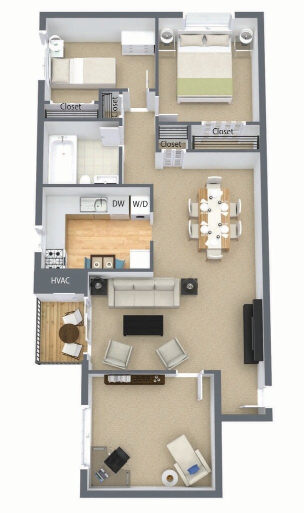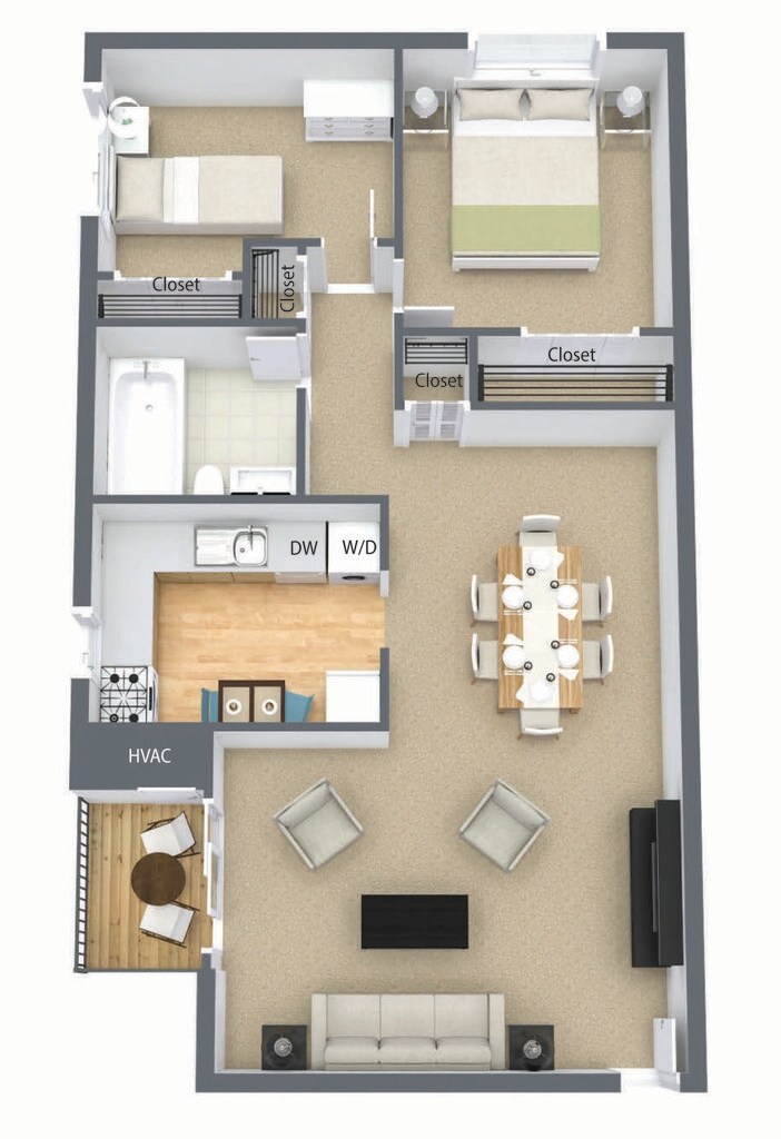 2 Beds, 1 Bath, 1055 sq ftAvailable February 16, 2026Model Gallery