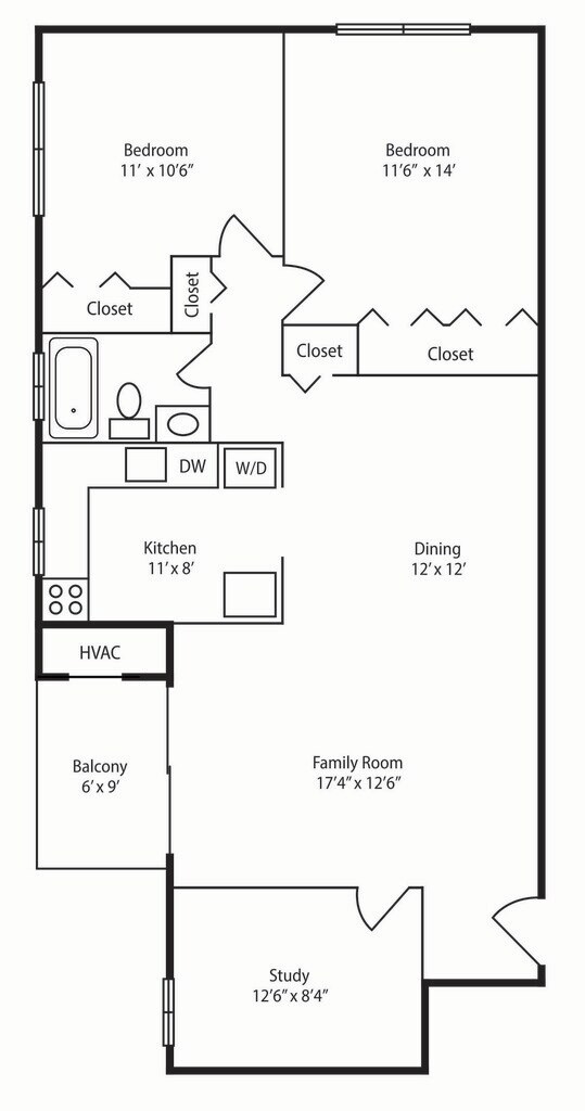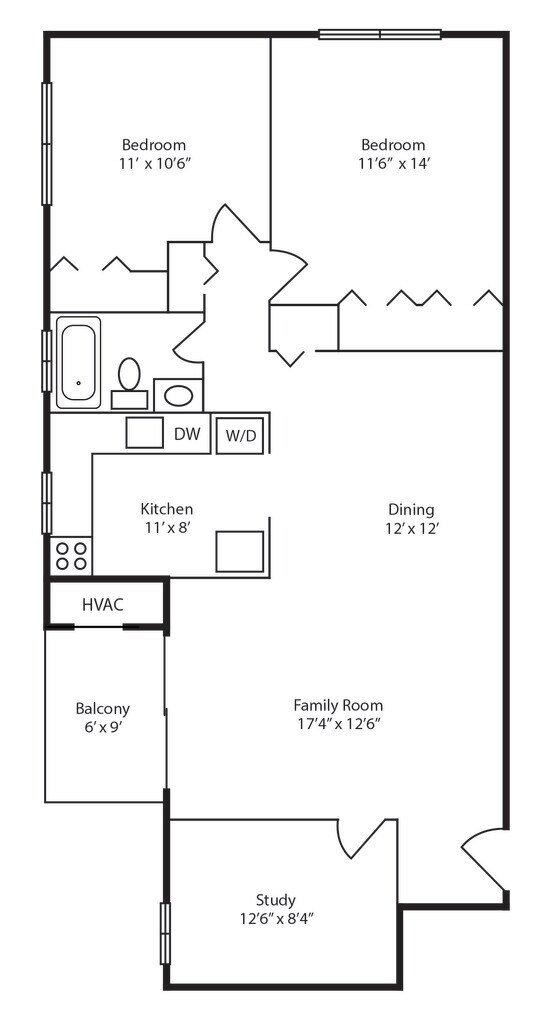 2 Bedroom 1 Bath Den - Floorplan 2 ![]()