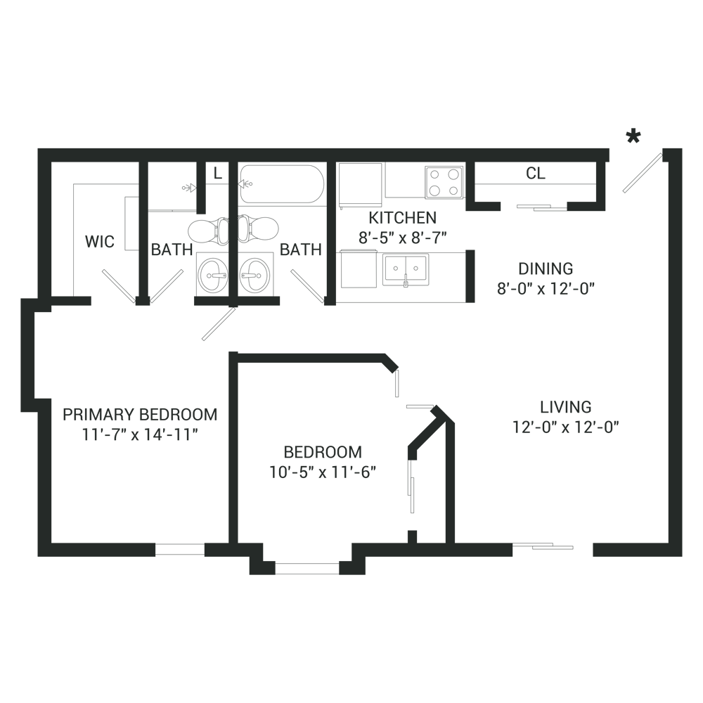 2 Beds, 1 Bath, 875 sq ftModel Gallery