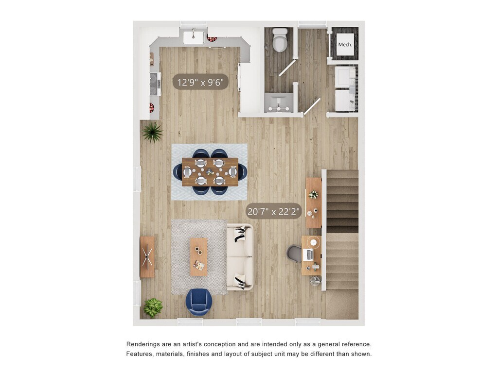 Apartment Model: Townhome A2From $1,5701 Bedroom, 1 Bath, 913 sq ftAvailable Now![]()