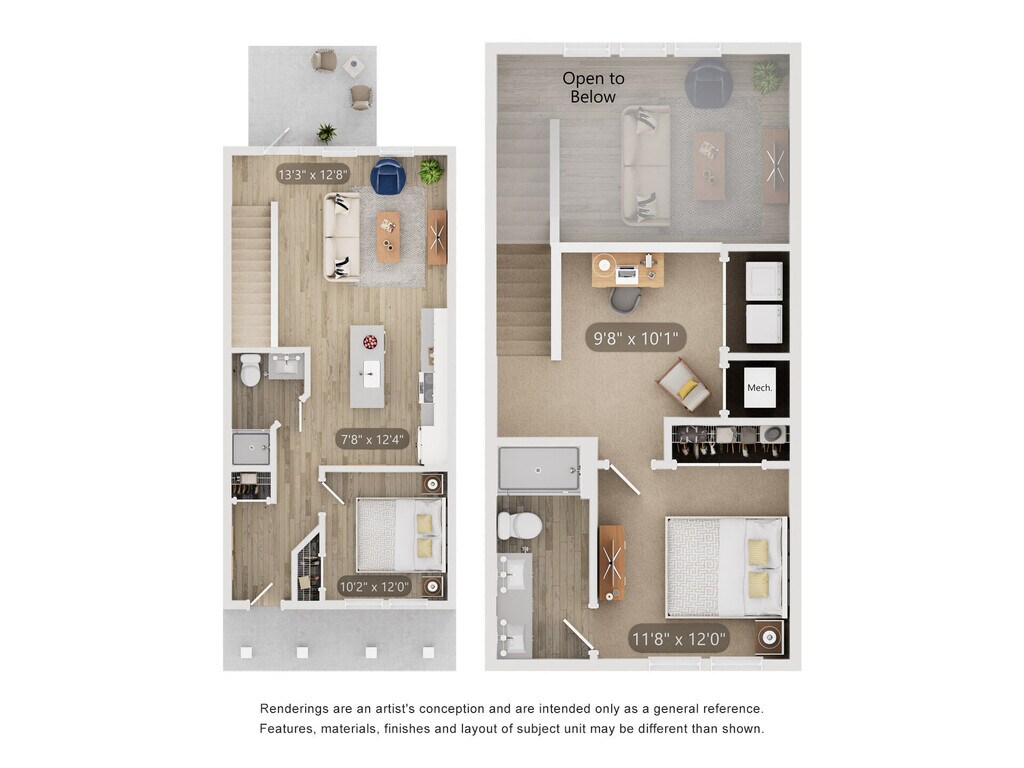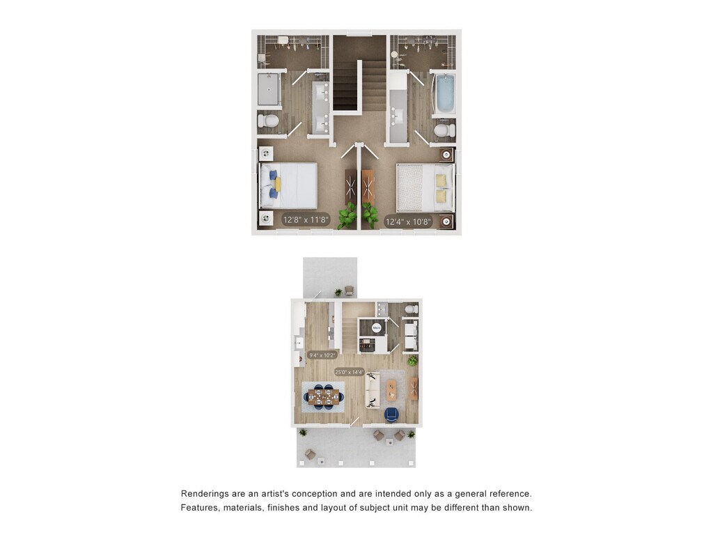 Apartment Model: Townhome B2From $1,9852 Bedroom, 2 Bath, 1078 sq ftAvailable Now![]()