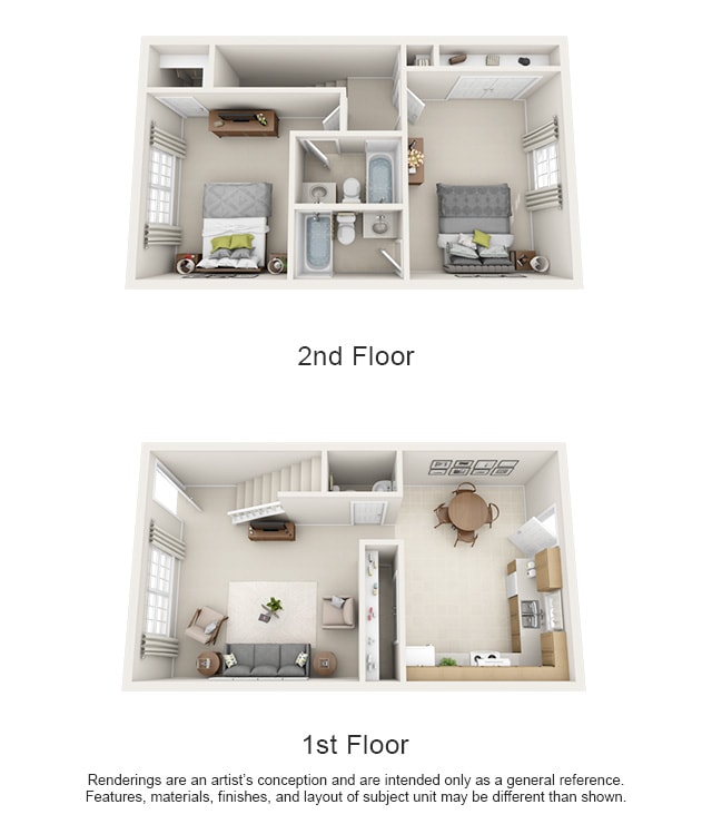 2 Beds, 2.5 Baths, 1200 sq ftModel Gallery
