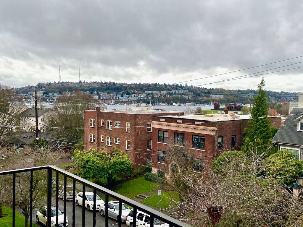 Hamlin Place is offering a top-floor apartment in the Eastlake neighborhood of Seattle, WA. The apartment features a large balcony that provides views of Lake Union and the Space Needle. The kitchen is equipped with a dishwasher and granite countertops. Hard wood floors are throughout the living room, kitchen and dining space. Offering free rent through January 31st.