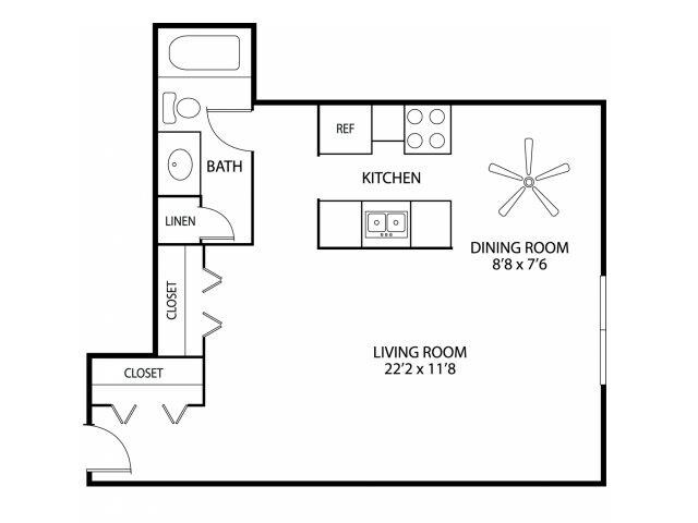 Apartment Model: KelloggCall For RatesStudio, 1 Bath, 640 sq ftUnavailable![]()