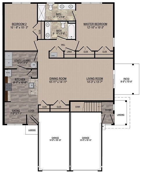 2 Beds, 2 Baths, 1389 sq ftAvailable NowLargest 2 BedroomThis is the largest 2 Bedroom at this PropertyModel Gallery