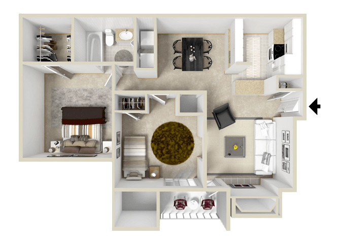 1 Bed, 1 Bath, 689 sq ftAvailable NowModel Gallery