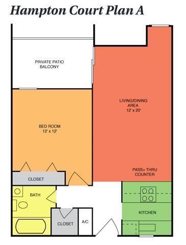 Whether you're dining in or dining out, Hampton Court is the place for you. These lovely one-bedroom apartments are distinguished by a convenient pass through counter from the kitchen to the living and dining area making it quick and easy for you to entertain at home.