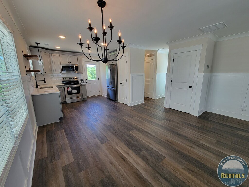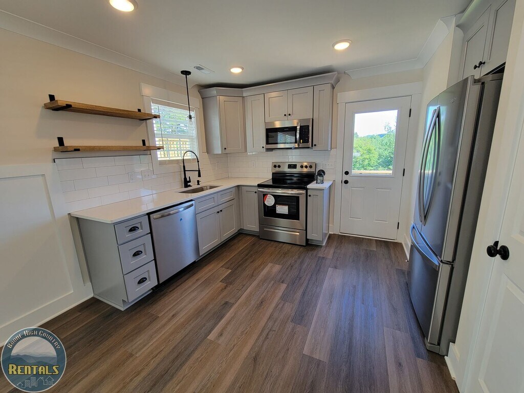 Overlook the Blue Ridge Mountains at Hampton Estates, a community of standalone townhomes located in East Boone. Built in 2022, these 3 Bed/2.5 Bathroom homes offer dark luxury vinyl plank flooring, high-end finishes, modern fixtures, private parking, and stone fireplaces. These are jointly leased and zoned R-1, meaning a max of two unrelated people are permitted. Property is pet friendly with non-refundable $300 pet fee and $30 monthly pet rent, limit of 2 pets. Lawncare and snow removal are included in the rent, all other utilities are tenant responsibility.