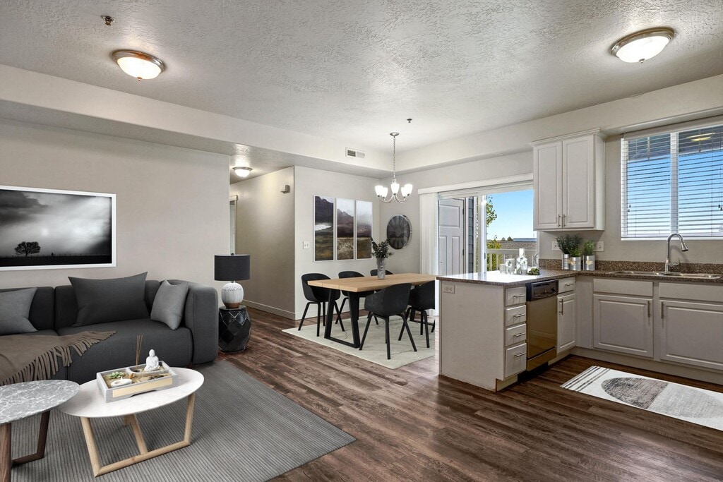 Love where you live at with Hampton Place Apartment Homes! An upscale community located in a beautiful North Salt Lake neighborhood. Offering one, two, and three bedroom apartment homes. Enjoy coming home to a modern kitchen with beautiful crisp cabinets, counter tops, stainless steel appliances, and over-the-range microwaves! Each apartment has an open concept design, nine or twelve foot ceilings, spacious walk in closets, additional storage, and their own full size washer and dryer. Each apartment also includes a private balcony. Your community amenities include a playground, two dog parks, 24 hour fitness center with a play area, year round hot tub, a swimming pool, separate garages available to rent, and onsite 24-hour maintenance.