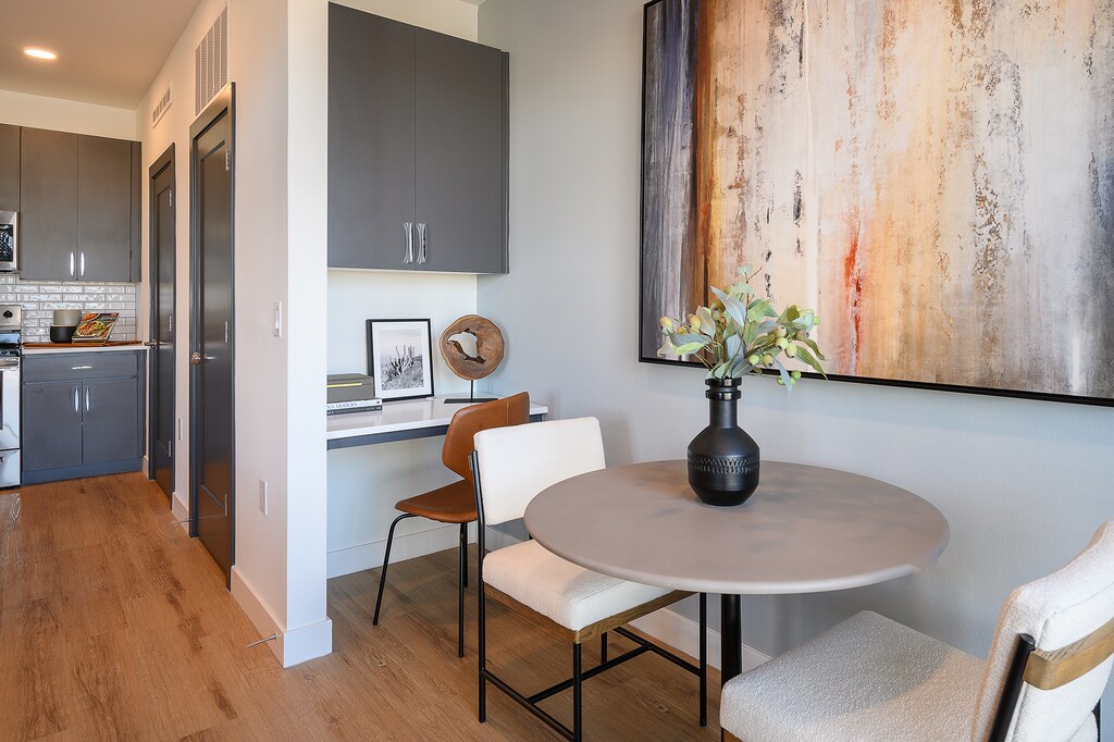 Located within the epicenter of metro Phoenix, Hangar 44 embraces elevated living by providing an eclectic mix of modern luxury amid a fast paced urban atmosphere. Our one- and two-bedroom homes surround you with style, ease and comfort, weaving together a unique collection of top-of-the-line facilities and in home standards including quartz countertops, stainless steel appliances and smart home technology. The community around which you can build your life; the home where life takes flight.