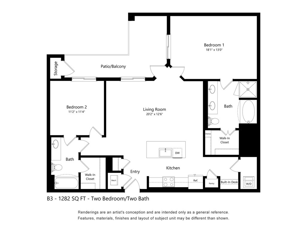 1 Bed, 1 Bath, 644 sq ftAvailable NowModel Gallery