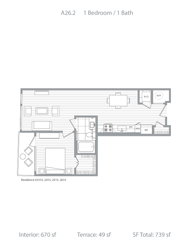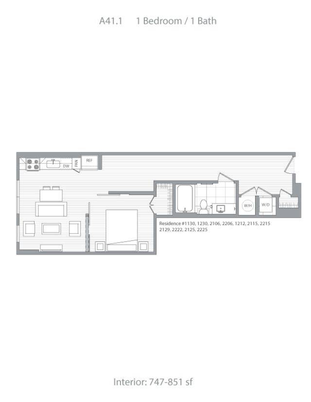 1D - Floorplan 1 Apartment Unit: North-1121Apartment Model: 1DFrom $1,9271 Bedroom, 1 Bath, 706 sq ftAvailable Now![]()