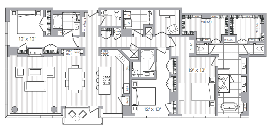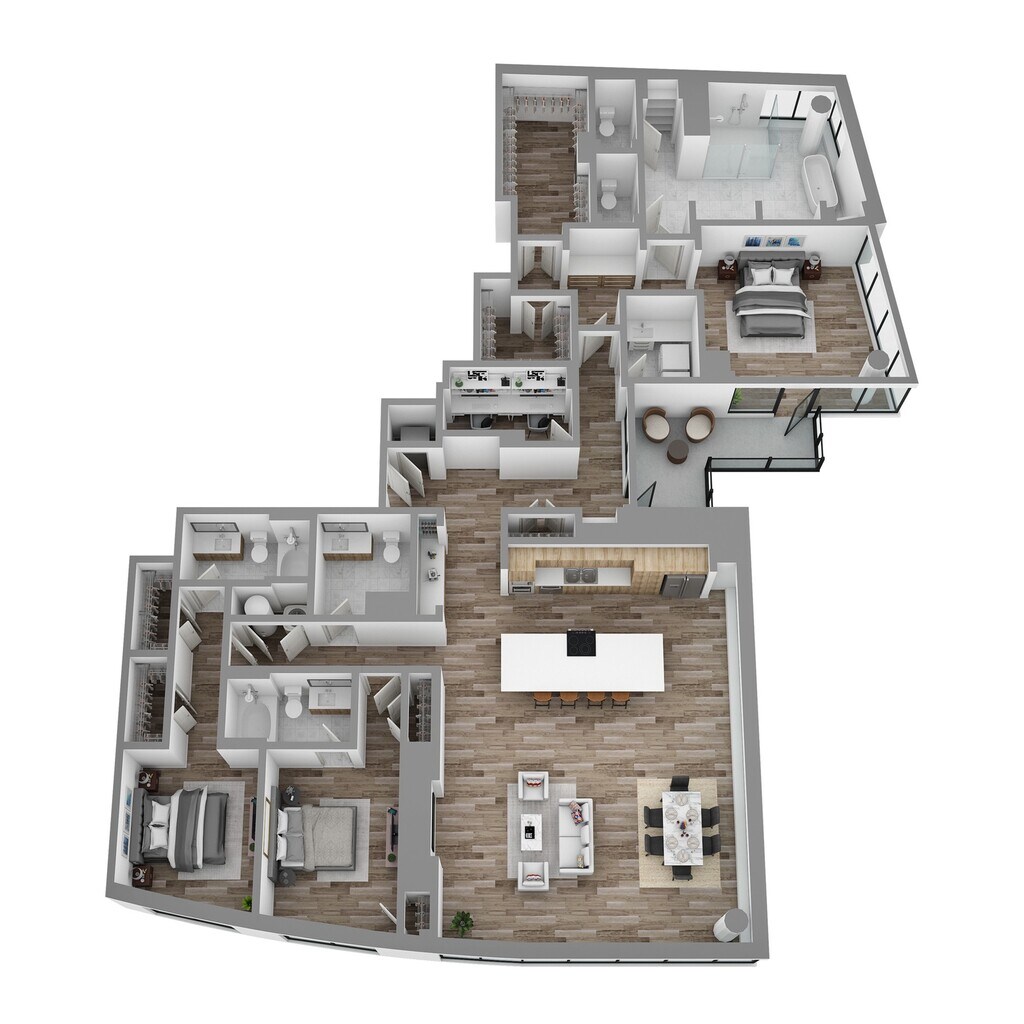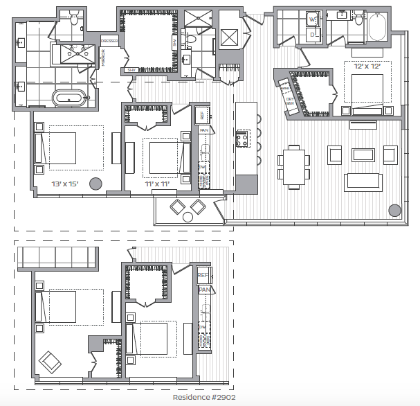 - Modern two and three bedroom penthouse residences