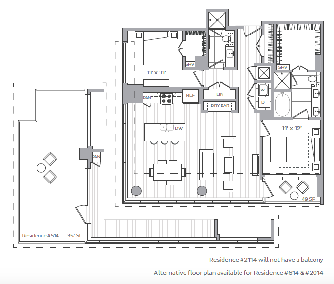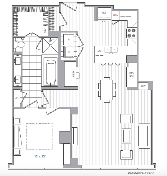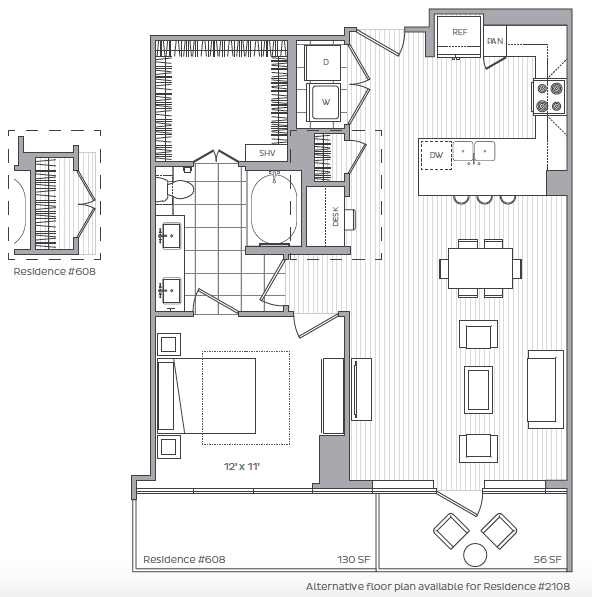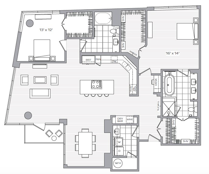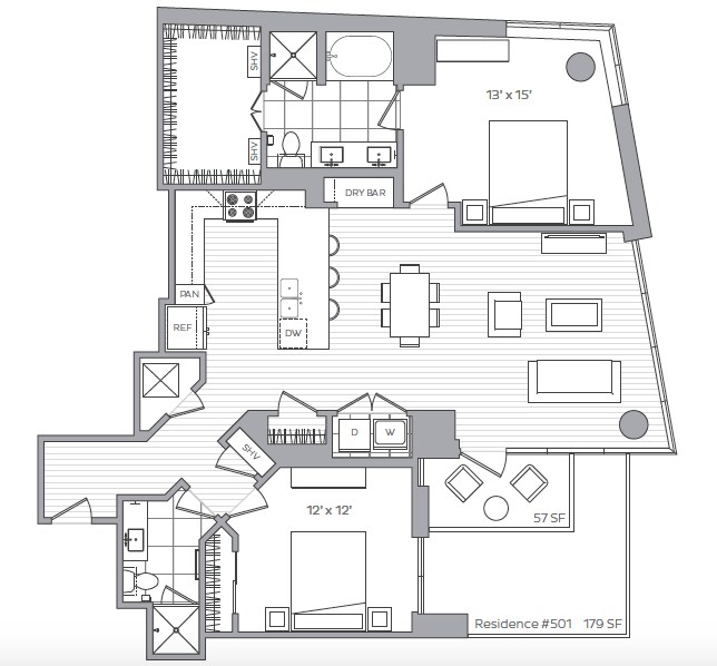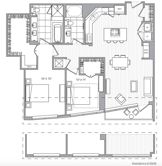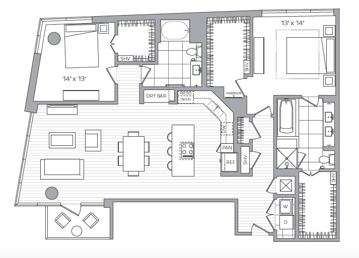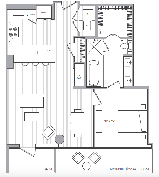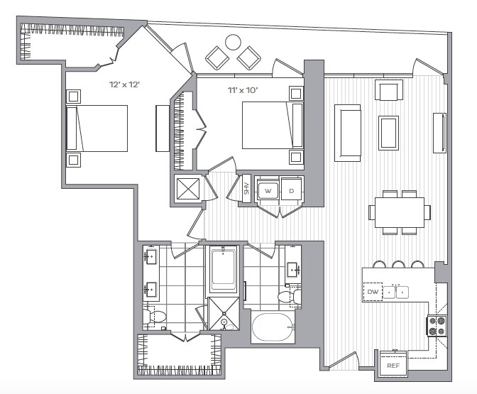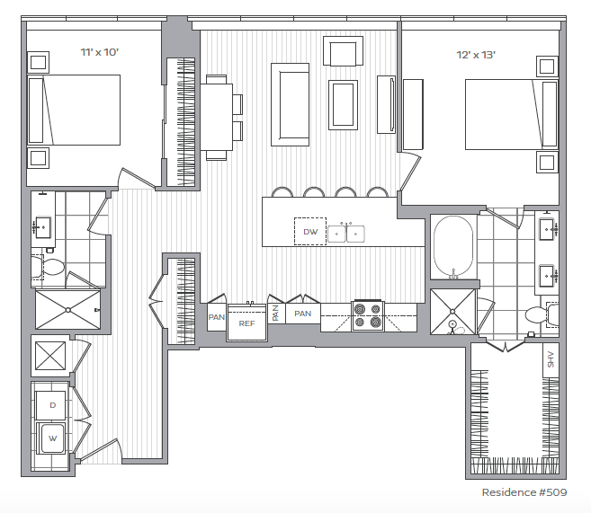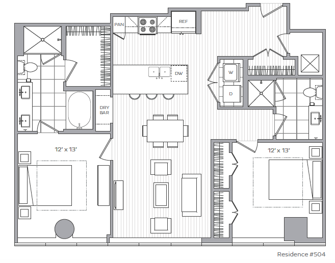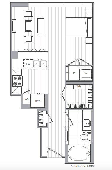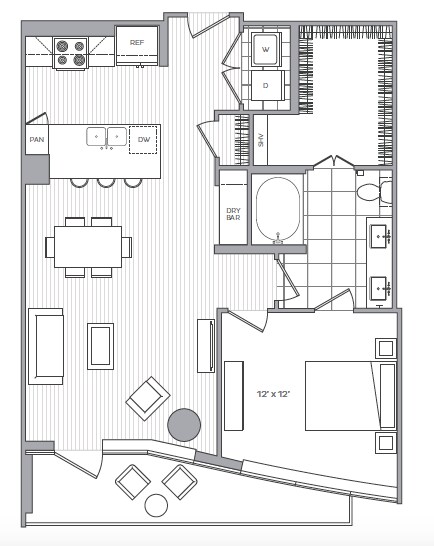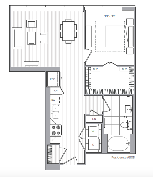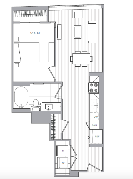 D - Floorplan 2 Apartment Unit: 505Apartment Model: D1 Bedroom, 1 Bath, 743 sq ftAvailable NowFloorplan G