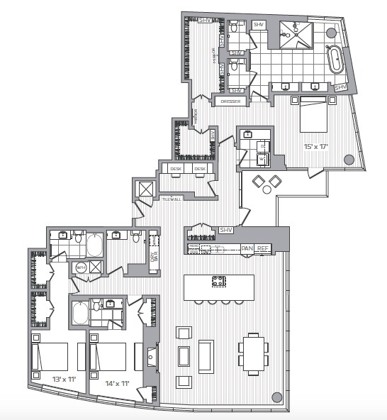 - Select Homes Feature: Built-In Desks, Dry Bars, Double Ovens, Vent Hoods, Private Terraces, Coffered