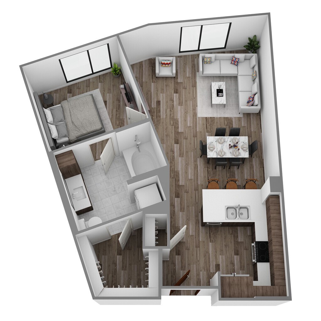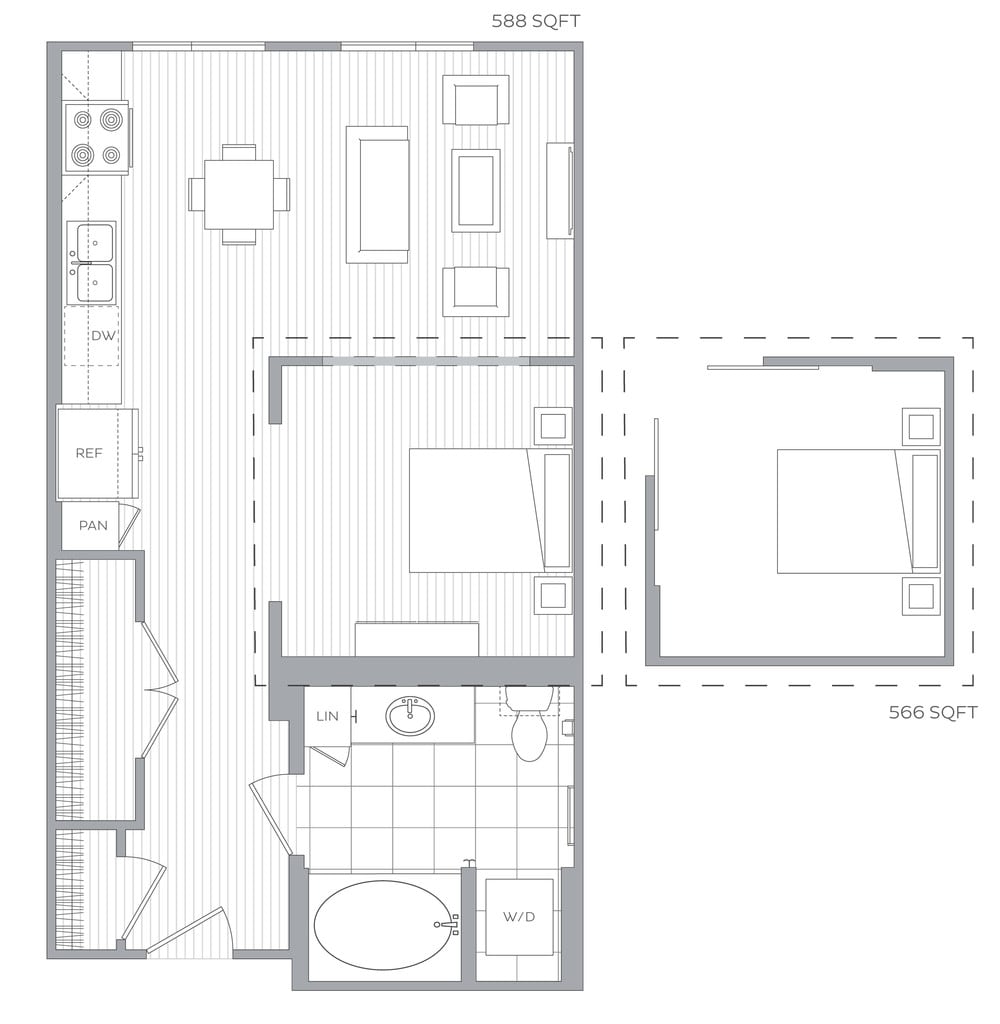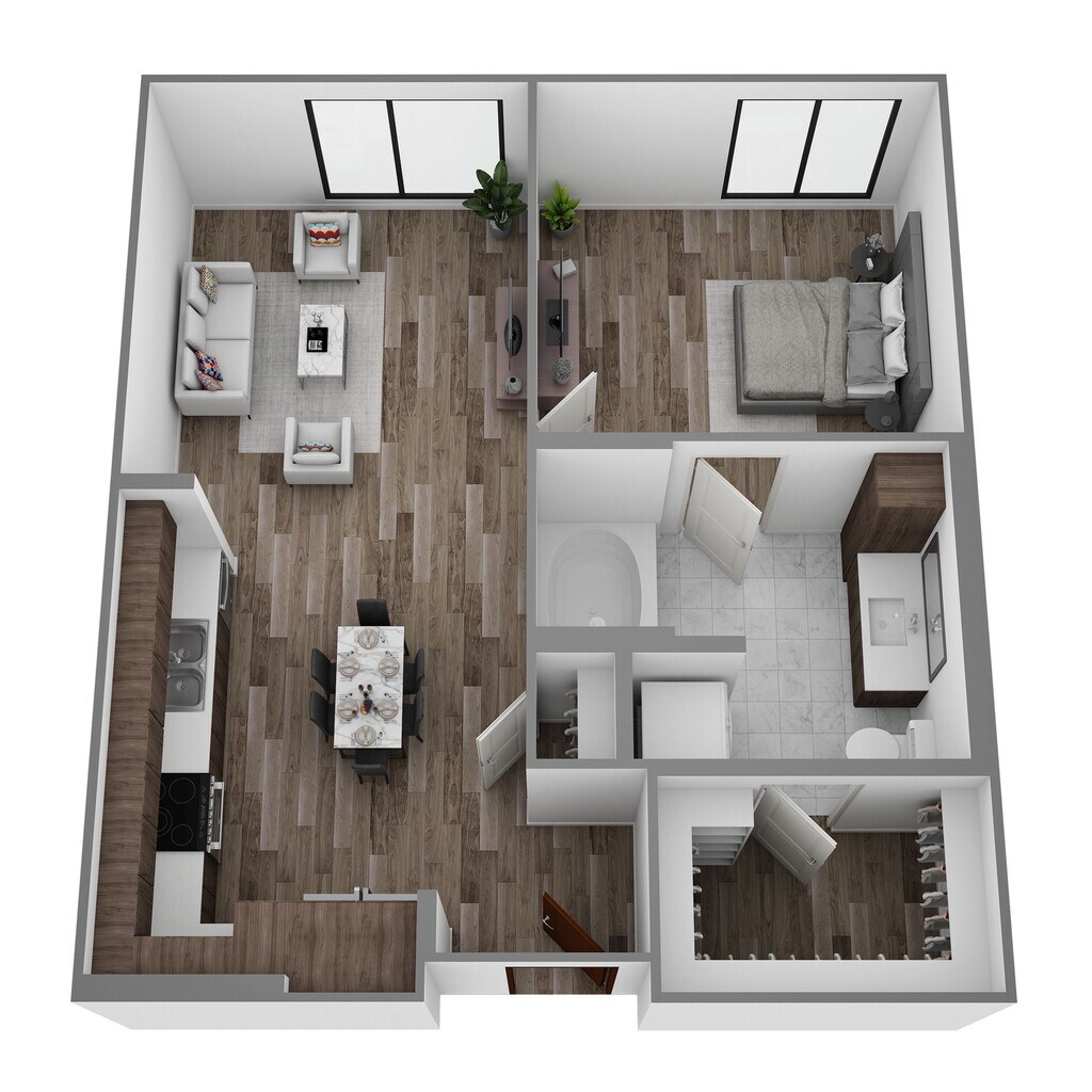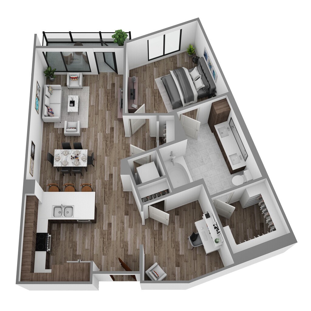 1 Bed, 1 Bath, 594 sq ftModel Gallery