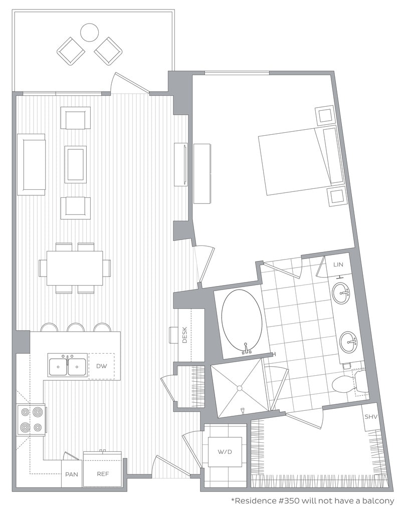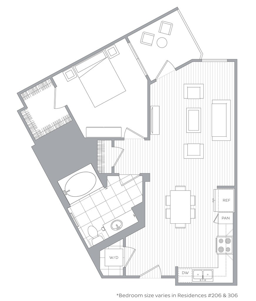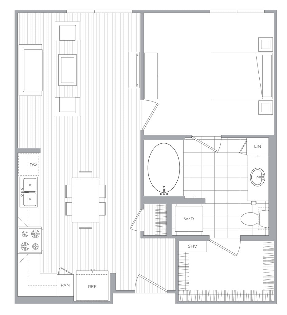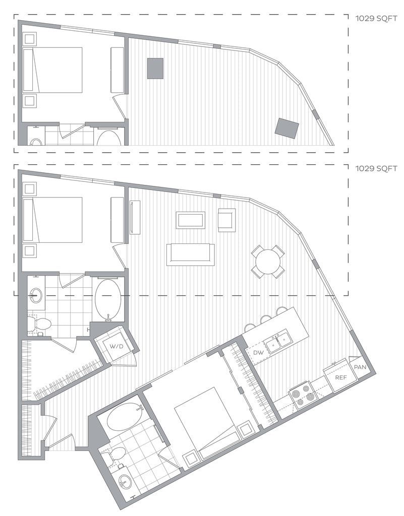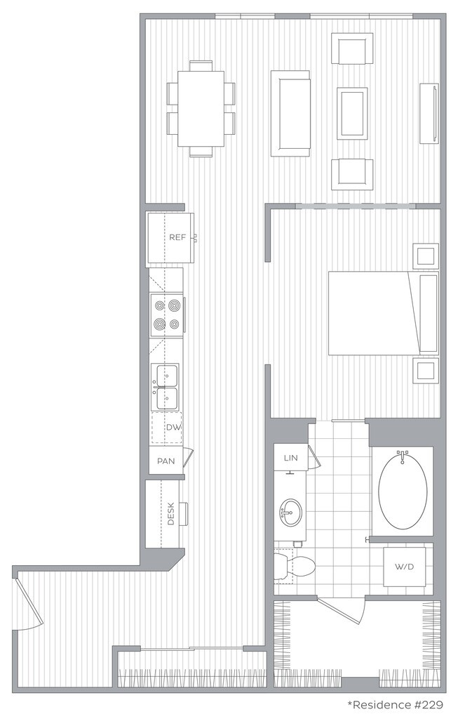1 Bed, 1 Bath, 594 sq ftModel Gallery