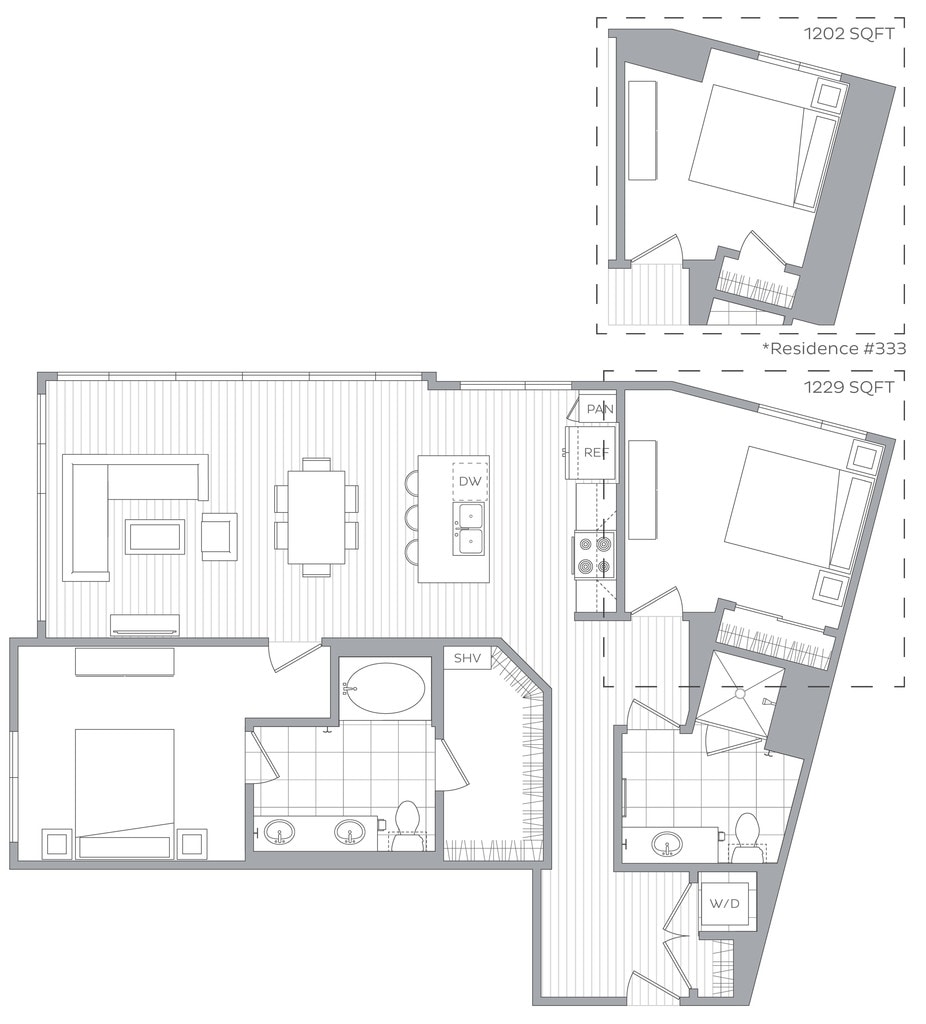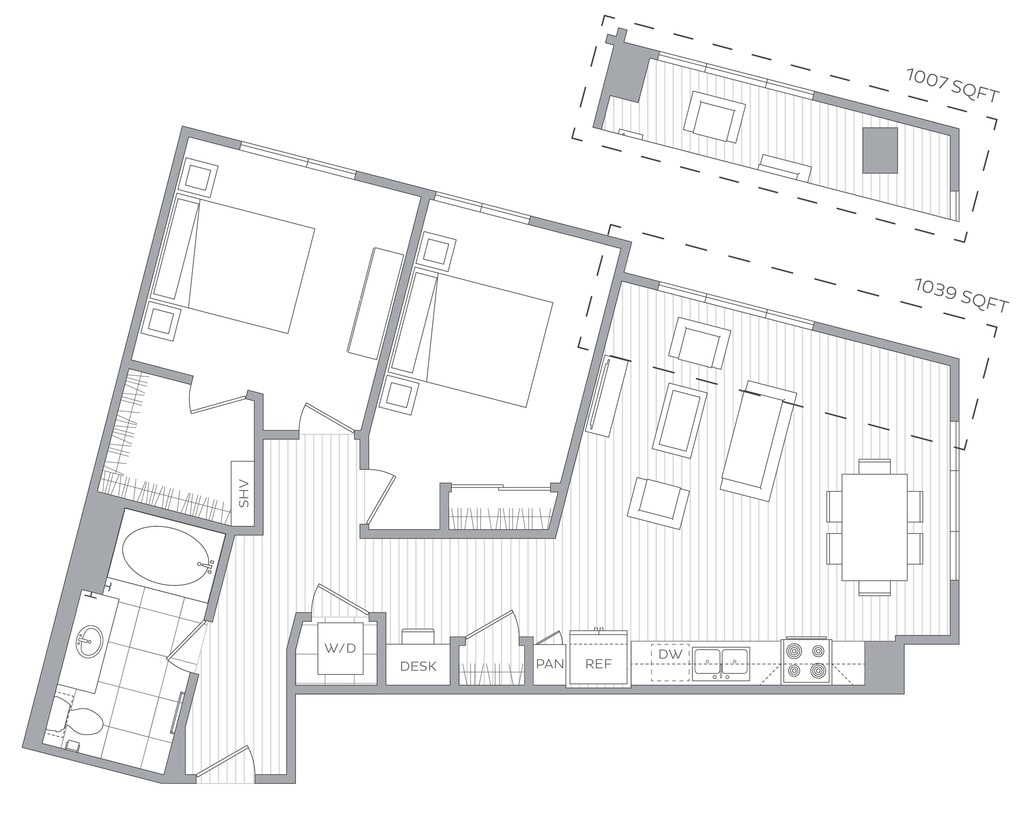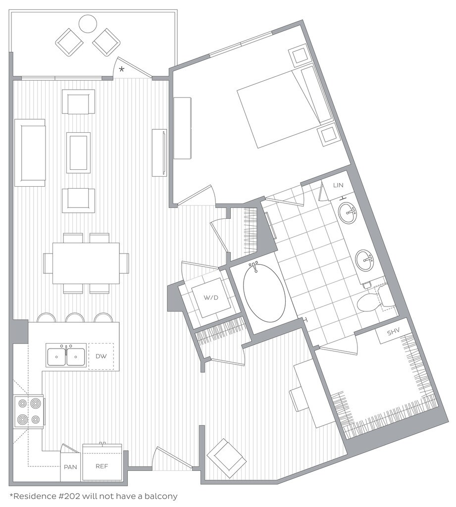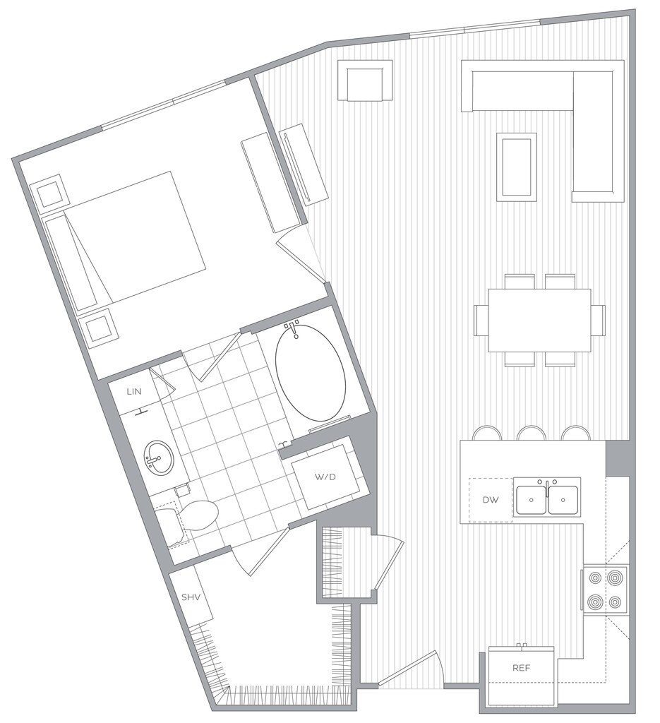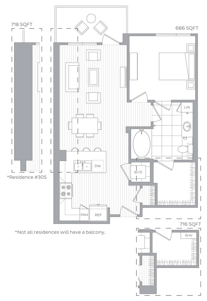 1 Bed, 1 Bath, 594 sq ftModel Gallery