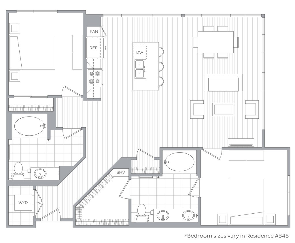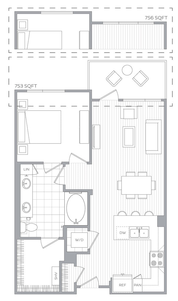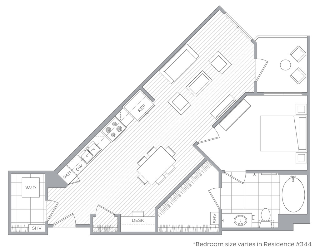 M - Floorplan 2 Apartment Unit: 524Apartment Model: M1 Bedroom, 1 Bath, 756 sq ftAvailable December 20, 2025Floorplan E