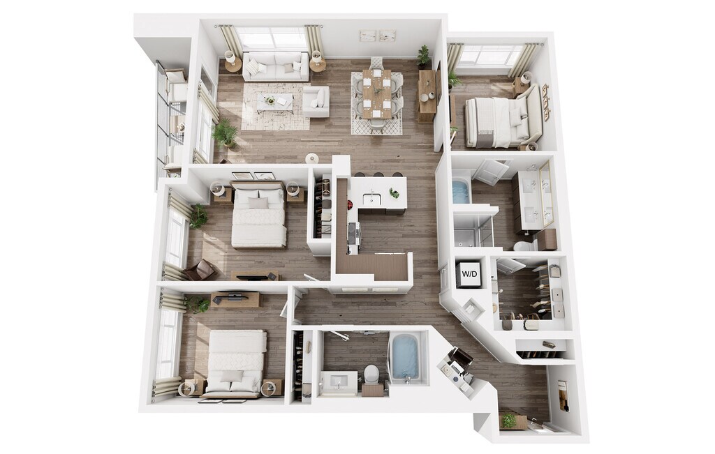 - Studio, one, two and three-Bedroom light-filled living plans