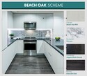 - Quartz and granite countertops with full-height backsplashes in elegant, neutral tones