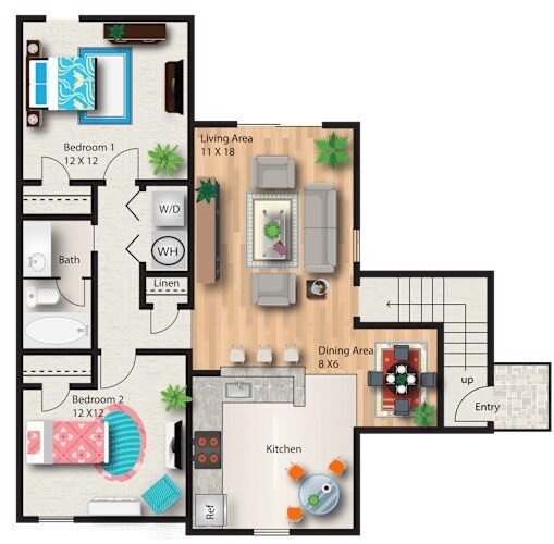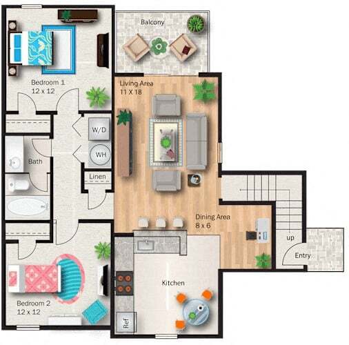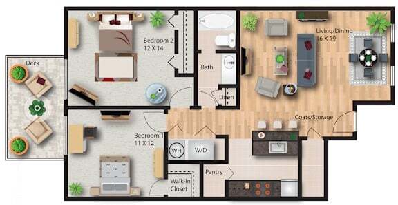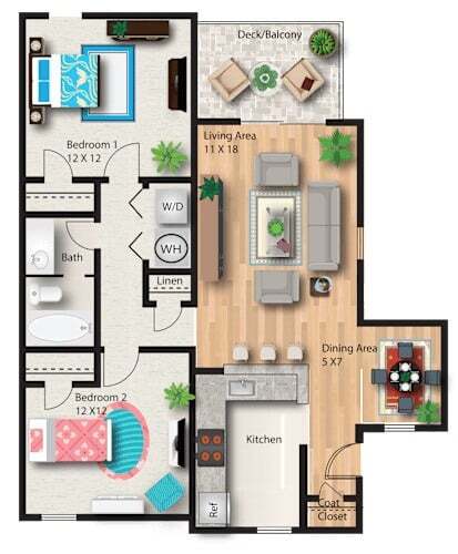 Apartment Model: PalmFrom $1,5992 Bedroom, 1 Bath, 950 sq ftAvailable Now![]()