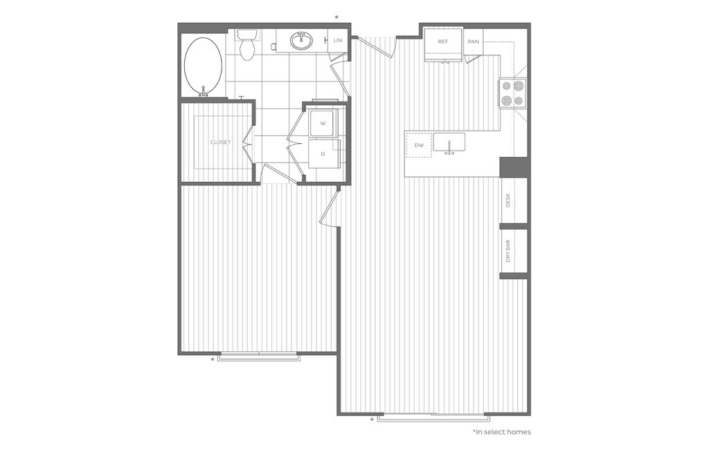 Studio, 1 Bath, 543-602 sq ftAvailable NowModel Gallery
