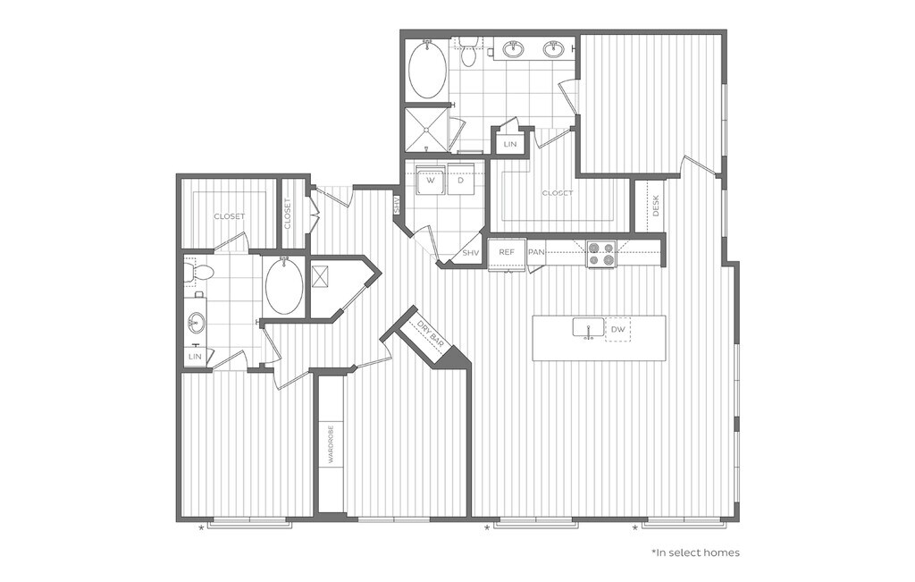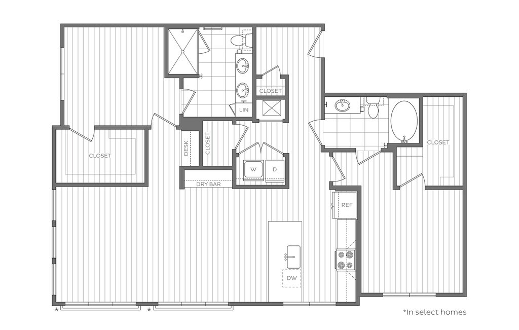 - Spa-inspired bathrooms offering oversized showers and soaking tubs, ample storage space, double vani